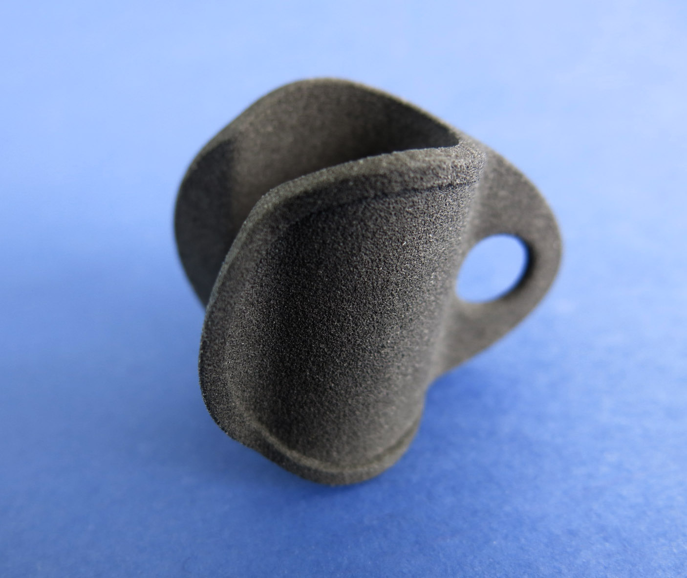 The CarbonMide objects printed at Sculpteo are created from a fine black plastic polyamide powder (PA12) reinforced with carbon-fibers. The material is characterized by an excellent stiffness and a maximized weight-strength-ratio. It nearly has the same mechanical properties than the solid black plastic Polyamide but is much more lightweight. The material is great for experienced professionals and people in need of a strong and lightweight material, and a very high 3D printing precision.